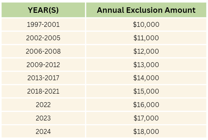 Note that some of these gifts may be subject to other limitations and you should review the numbers with your CPA or tax attorney prior to distribution.